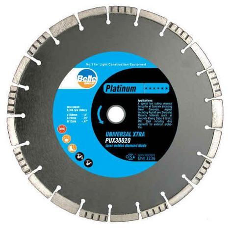 The Altrad-Belle Platinum Universal Diamond Blade is a high-performance cutting tool designed for versatility across various construction materials. Ideal for professionals requiring efficient cutting solutions, this blade excels in handling concrete (including green concrete), asphalt (including asphalt over concrete), and masonry materials such as paving slabs and bricks. Its robust construction provides precise and long-lasting cutting performance.