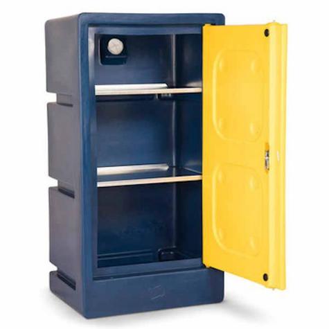 Made from UV-resistant double-layer polyethylene, this cabinet resists corrosion and fading. It includes a two-point locking door, aluminium shelving rated at 60 kg per shelf, a 60 L bunded base for spill containment, and rear ventilation to prevent fume build‑up. Complete with clear hazardous signage, it's built for safety and longevity.