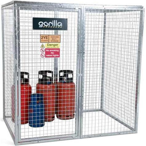 Manufactured from 25 mm box-section steel and 3 mm wire mesh, the GGC8 is hot-dip galvanised for maximum resistance to corrosion. The hinged door is padlock-ready, and the cage includes integrated hazard signage and ventilation, ensuring full COSHH compliance. Ground-fixing points are included for added stability.