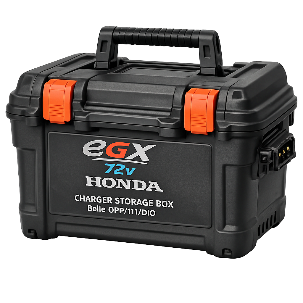 A: The storage box is designed to hold battery chargers and related accessories for Belle 82 V battery systems.
