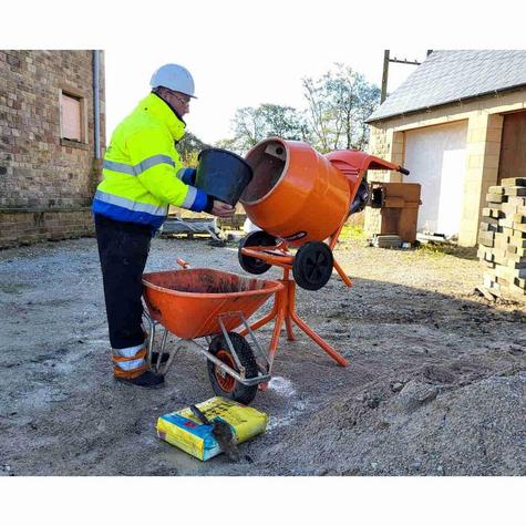 A: It handles standard concrete, mortar, and screed mixes--ideal for foundations, pathways, and bricklaying.