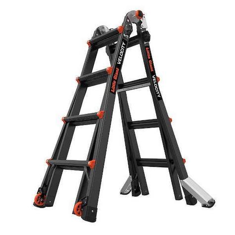 A: The Velocity PRO can be configured as an A-frame ladder, extension ladder, staircase ladder, 90-degree ladder, and can also be set up for trestle-and-plank scaffolding positions.