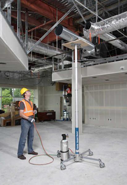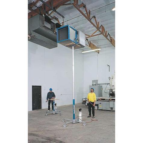 The Genie GH-3.8 Super Hoist is a portable, lightweight material lift powered by CO₂ or compressed air. It's ideal for lifting, positioning, and installing various materials such as air ducts, plumbing, drywall, ceiling panels, heaters, chimney pipes, and electrical fixtures. Its compact design allows for quick setup and easy transportation, making it suitable for a variety of job sites.