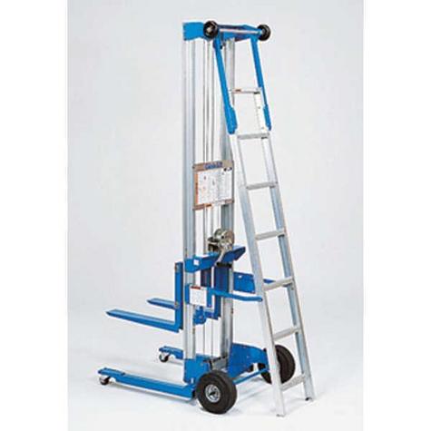 Constructed with durability in mind, the GL-4 features a robust steel frame and standard steel forks. Its compact design enables it to roll easily through standard doorways, and it can be set up in seconds without the need for tools. The lift's lightweight structure allows for easy loading into a pickup truck for transportation between job sites.