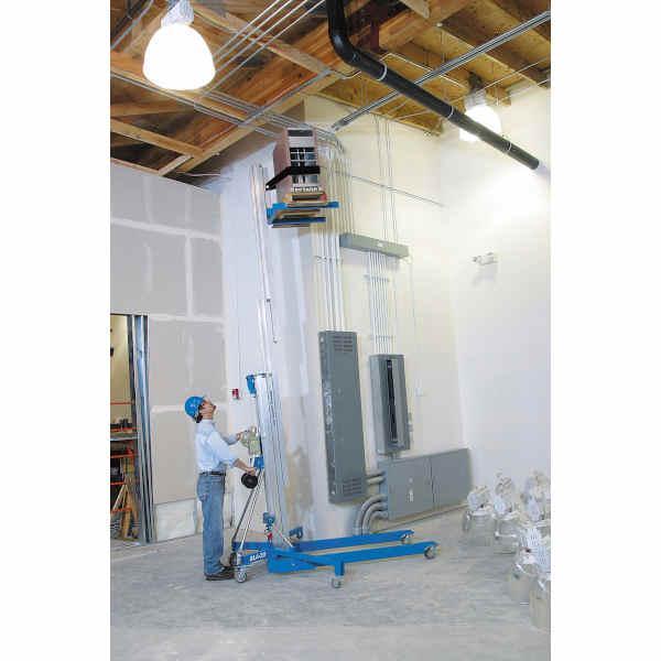 The Genie SLA-25 Superlift Advantage is a manually operated material lift designed to enhance productivity in various material handling applications. Its compact and portable design makes it ideal for construction sites, warehouses, and industrial settings where lifting and transporting heavy materials is required.