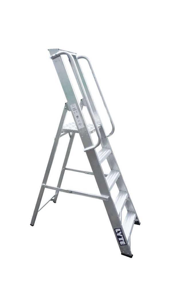The Lyte MagnaSteps 5‑Tread aluminium platform with dual handrails (model NBSWP5M/HR) provides enhanced stability and safety for professionals working at mid-height. Featuring a wide standing platform, integrated magnetic tool tray, and EN131‑2 certified bolted construction, it's ideal for frequent use in industrial, maintenance, and trade applications.