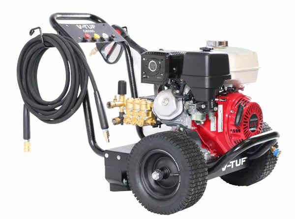 The V-TUF GB080 is a robust, industrial-grade pressure washer engineered for demanding cleaning tasks across various sectors, including construction, agriculture, and facilities management. Powered by a 9HP Honda GX270 petrol engine, it delivers an impressive 200 Bar (2900 psi) pressure at a flow rate of 15 litres per minute, ensuring the efficient removal of stubborn dirt and grime.