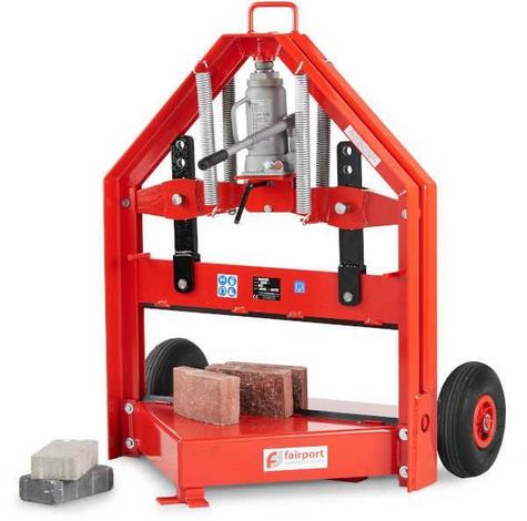 The Fairport FBS40M is a manual block splitter designed for professionals in the construction and landscaping industries. It efficiently cuts cap stones, rough-cut stones, paving, granite, and most flat stone materials up to 210mm thick.