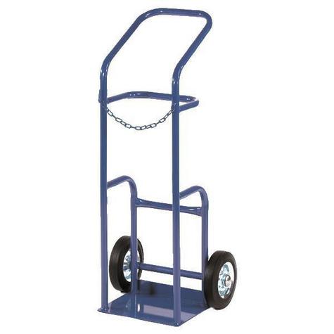 Constructed from heavy-duty materials, the trolley ensures durability and stability during operation. The ergonomic design includes rubber handles for a comfortable grip and solid tyre wheels that facilitate smooth movement across various surfaces. A secure bottle chain is incorporated to keep the cylinder firmly in place during transit.