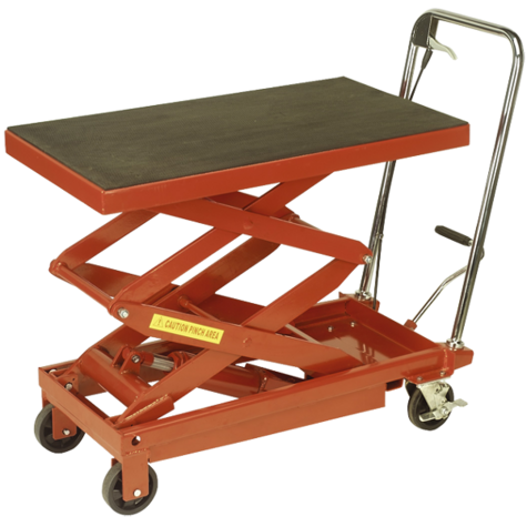 The Warrior WR50 500kg Single Scissor Lift Table is a robust and versatile solution designed to assist in the lifting, transporting, and positioning of materials up to 500 kg. Its single scissor mechanism allows for a lift height ranging from 285 mm to 880 mm, making it ideal for tasks that require elevated positioning in industrial and commercial environments. This manually operated lift table enhances workplace efficiency and safety by reducing physical strain during material handling operations.